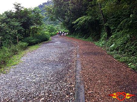 入口處開始就會發現同一條步道上面,有兩種路可以選『石頭』『木屑』