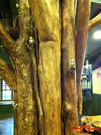 屋子中間,有個大樹模樣的情境,人們進入其中彷若身處在大樹下一般,伴隨著著檜木香。裡面有著:林業、動物、植物、