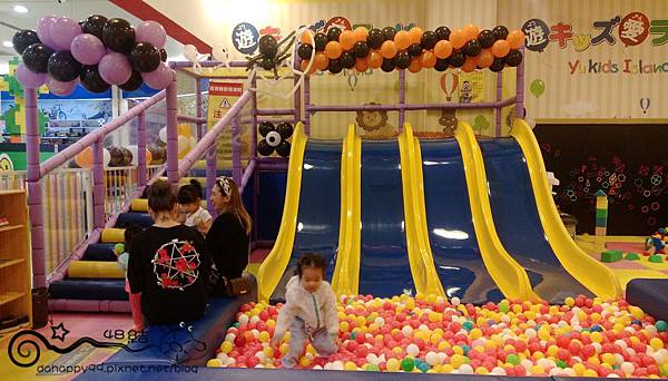 適逢月底是萬聖節 所以球池溜滑梯也做了氣球造型頗為別致