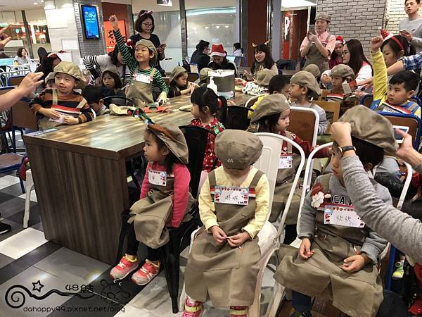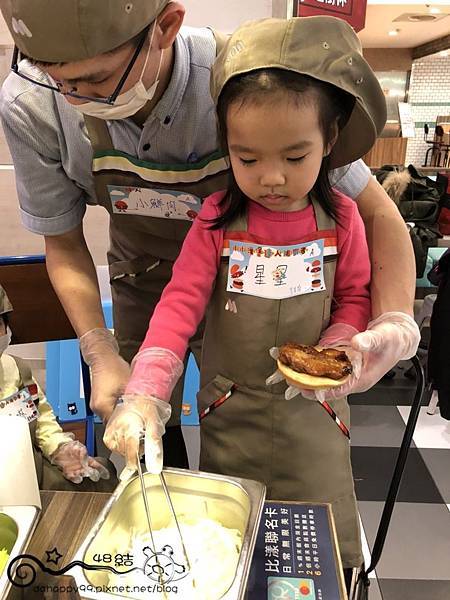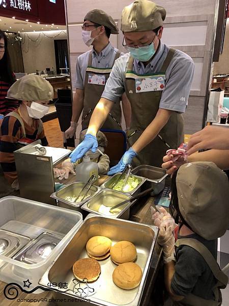 上工前的標準作業說明 小人得知可以自己搞漢堡 都很認真聆聽捏